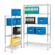Unsere stabilen und formschönen Chromregale sind ideal für die Lagerung in Läden und Büros ebenso wie in Krankenhäusern oder Kellerräumen. Die Leichtlastregale halten problemlos einer Last von bis zu 150 kg pro Fachboden stand, sofern das Gewicht gleichmäßig verteilt ist. Durch das schlichte Design sind diese Regale außerdem sehr gut zu Dekorations- und Präsentationszwecken geeignet. Ein weiterer Pluspunkt ist die leichte Montage: Bei unserem Chromstahlregal handelt es sich um ein sogenanntes Stecksystem. Sie können das Modell ohne Schrauben aufbauen und benötigen lediglich einen Gummihammer, um die einzelnen Teile zusammenzufügen.