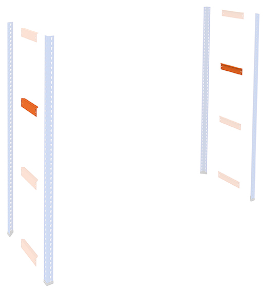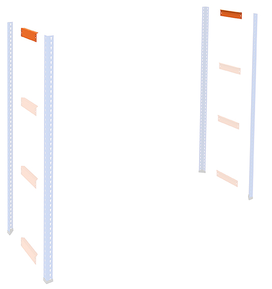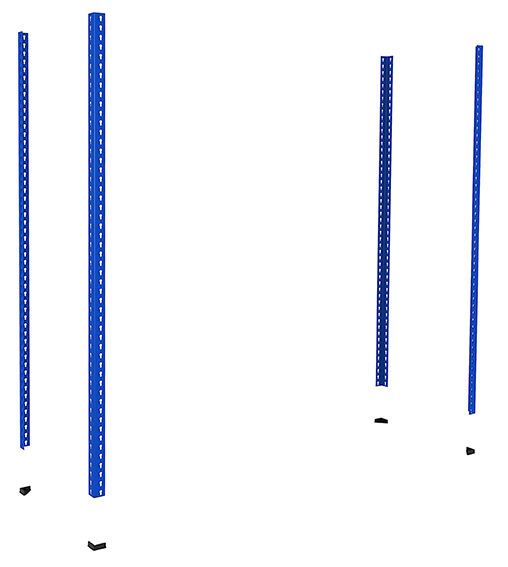 - 4 blaue perforierte senkrechte Pfosten mit 1981 oder 2438 mm Höhe und Kunststofffüßen.