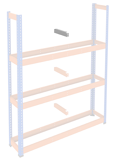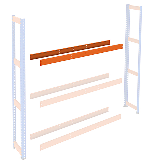 - 1 galvanisierte zentrale Verstärkungstraverse. Ausgenommen die Regale mit 1200 mm Breite ohne Verstärkungstraverse.