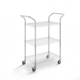 Sie sind auf der Suche nach stabilen Rollwagen, die sowohl schweren als auch leichten Lasten problemlos standhalten? Mit denen Sie Materialien, Dokumente, Lebensmittel und Werkzeuge sicher von A nach B transportieren können? Dann entscheiden Sie sich für unsere verchromten Gitter-Etagenwagen mit Gitterkörben aus Stahldraht. Sie weisen durch Ihre Legierung eine hohe Widerstandsfähigkeit auf und bieten zudem durch ihre vergrößerte Ladefläche ausreichend Platz, um den Transport von Inhalten mit einem Gewicht von bis zu 250 kg zu ermöglichen.
